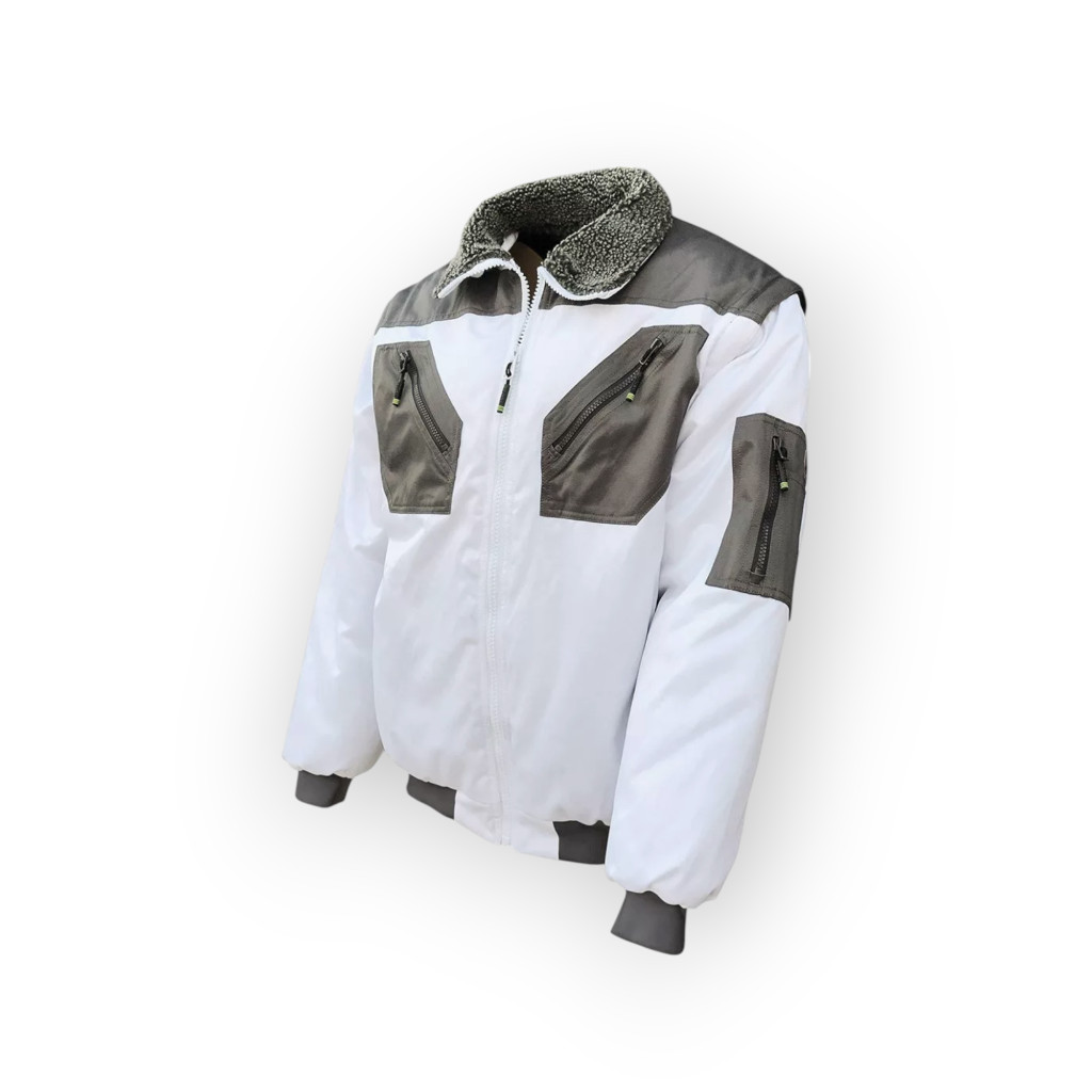 Bélelt festőkabát - víz- és szennytaszító külső alapanyag - víz- és szélálló - lecipzározható ujjal, mellénnyé alakítható - vastag szőrmével bélelt nyakrész - szürke gumírozott mandzsetták - erősített zsebek, reteszelt varrás - 5 db külső zseb, 2 db alulsó bevágott zseb, 1 db karzseb, mobiltelefontartó zseb, két felső zseb - 44-től 66-os méretekben raktárkészletről