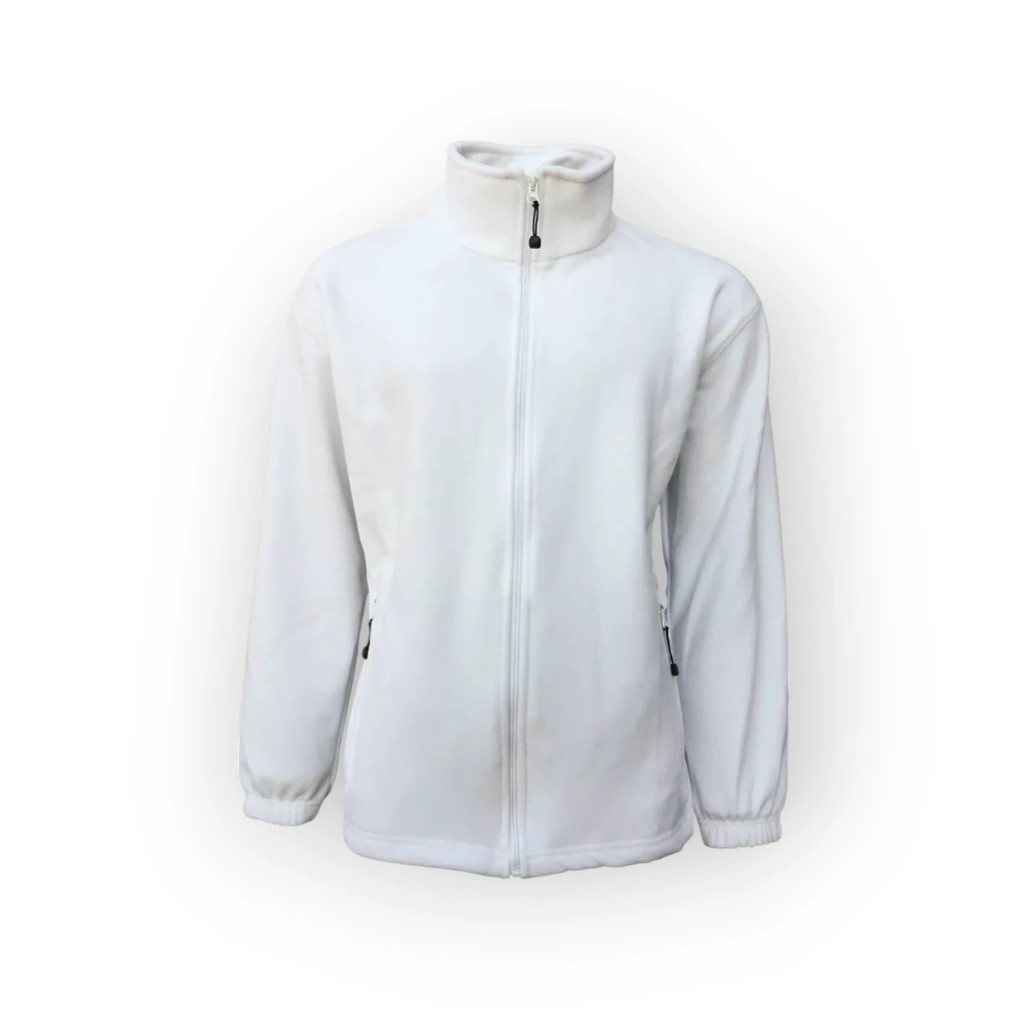 Prémium polár kardigán - fehér élelmiszeripari polár kardigán  - 100% poliészter - cipzáras - két alsó zsebbel - gumírozott mandzsettával - kényelmes viselet - fényviszzaverő csíkkal is elérhető