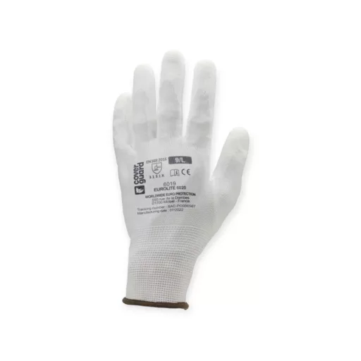 Fehér precíziós poliészter Pu mártott kesztyű