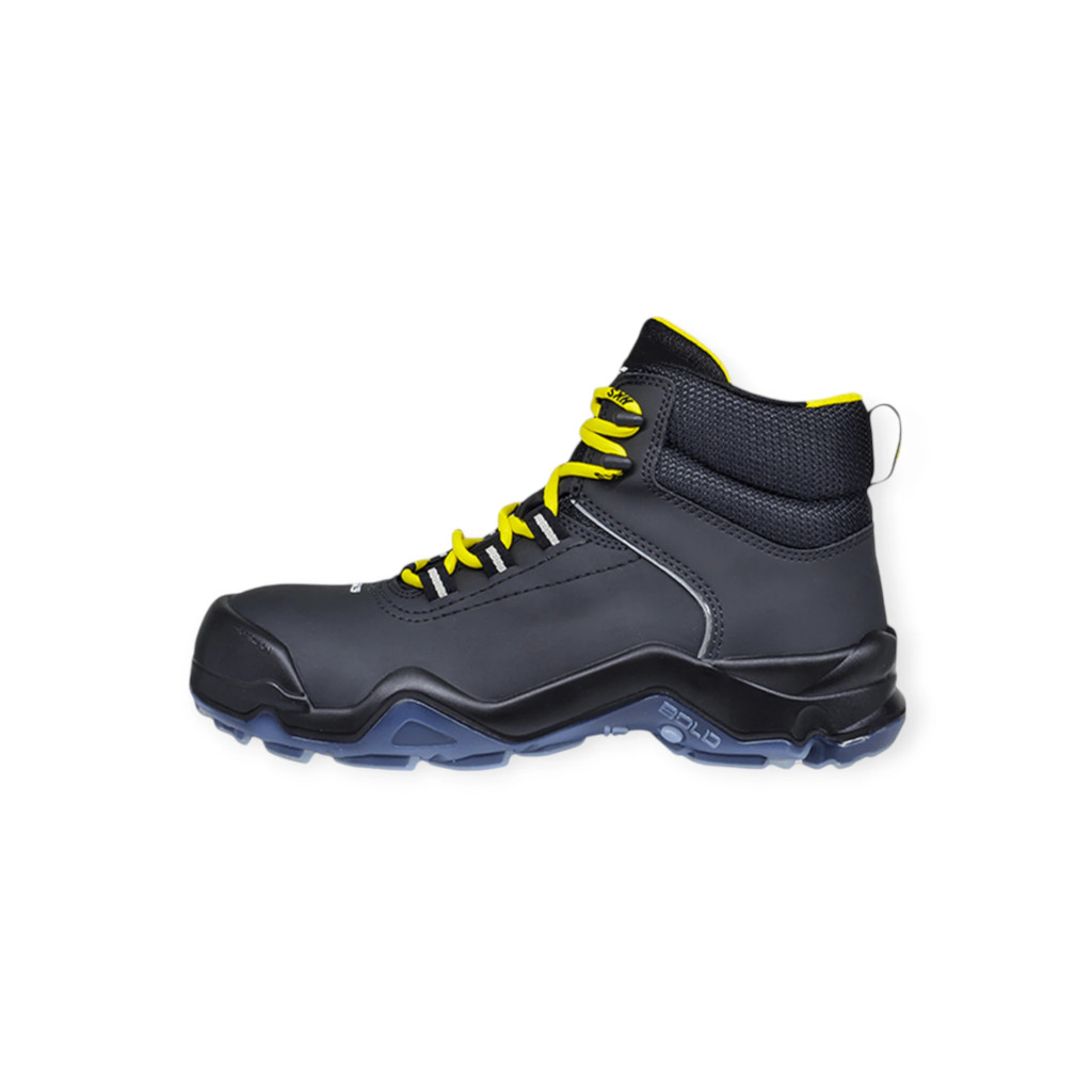 Modern, határozott megjelenésű, kompozit és kevlár védelemmel ellátott munkavédelmi bakancs. A bakancs az S3-as minősítésnek megfelelően teljesen vízhatlan, valamint ESD védelemmel is ellátták. Vastag és kifejezetten strapabíró felső résszel rendelkezik ezért ideális választás szinte bármilyen munkakörülményhez. A cipő orrán egy extra vastagságú PU orrborítás található, ami tovább növeli a lábbeli élettartamát.