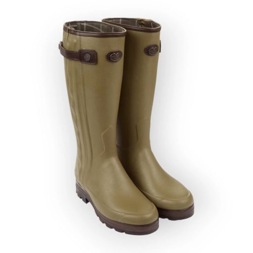 • Exkluzív kivitelű, neoprén béléses gumicsizma zöld színben.  A Prestige család mindegyik tagja barna színű bőrpántjával kinézetre markánsan különbözik a „Chasseur” kollekciótól.