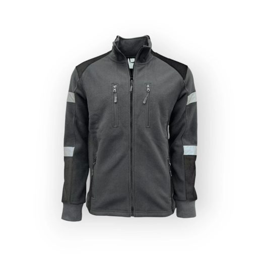 Prémium polár kardigán - szürke színben - magas minőségű - 360 gsm sűrűségű poliészter alapanyag - két cipzáras mellzsebbel - két cipzáras oldalzsebbel - gumírozott csuklórész - a karokon fényvisszaverő csíkkal