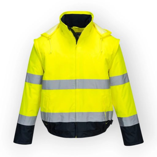 Külső anyag: 100% poliészter, 150D Oxford szövés, PVC bevonattal 200g Bélés anyaga: 100% poliészter polár 300g Adaptálható és funkcionális modell amelynek kiváló az ár-érték aránya.Olyan funkciókkal ellátva, mint a két nagy zseb, belső zseb tépőzárral, levehető rejtett kapucni és levehető zippzáras ujjak. Meleg polár béléssel és kontraszt panelekkel a szennyeződések elleni védelem érdekében. Jellemzők: vízálló ragasztott varratokkal, mely megakadályozza a víz behatolását, teljesen bélelt és párnázott, mely megőrzi a hőt és növeli a melegségérzetet, sokoldalú, kétfunkciós kabát, 3 sokoldalú, praktikus tárolózsebbel, praktikus rejtett kapucni, félig gumírozott derékkialakítás a biztonságos és kényelmes illeszkedésért. EN ISO 20471 Class 3 EN 343 Class 3:1 (WP 5,000mm)