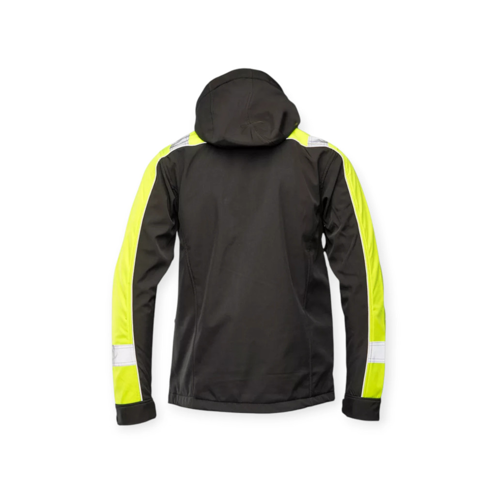 Egyenes szabás, funkcionális kialakítás, SOFTSHELL anyag. - dekoratív fényvisszaverő elemekkel - cipzáras záródás  - levehető, állítható, polár béléses kapucni - cipzáras mell és első zsebek - cipzáras zseb a bal felkaron - tépőzárral állítható mandzsetta - állítható derékrész.