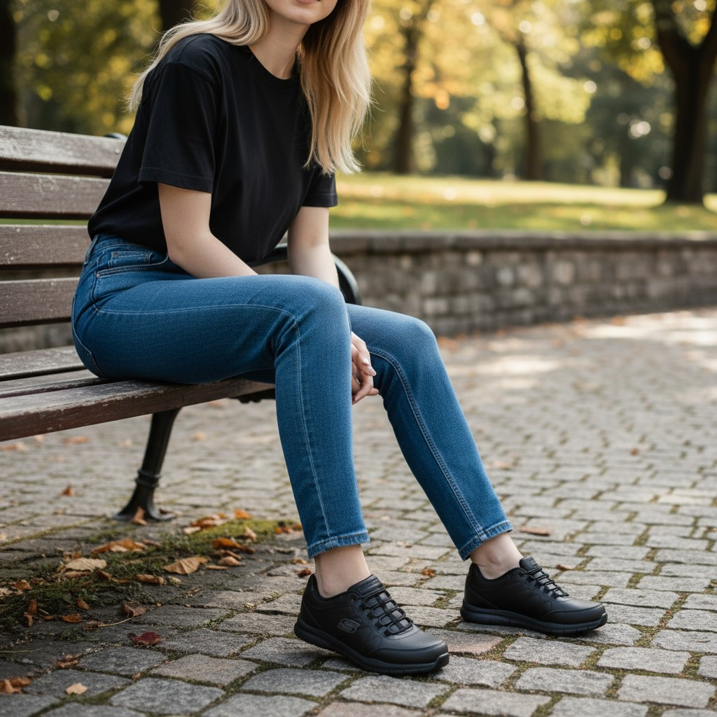 Könnyű és kényelmes munkacipő O1 kategóriában. - Vízlepergető, sima szintetikus felsőrész – könnyen tisztítható. - Csúszásmentes (SRC minősítésű) gumitalp nedves és olajos felületeken is biztos tapadást. nyújt - Skechers Memory Foam® párnázott talpbetét a maximális komfortért. - Ütéscsillapító, hajlékony középtalp a kényelmes járásért. - Puhán párnázott boka- és nyelvrész. - Fémmentes kialakítás – könnyű, rugalmas viselet. - Egyszínű, letisztult fekete dizájn.