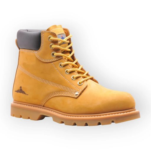 Varrott talprögzítéssel, a legmagasabb minőségű bőrből szivacsbélelt nyelvvel és szárral készülő védőbakancs.