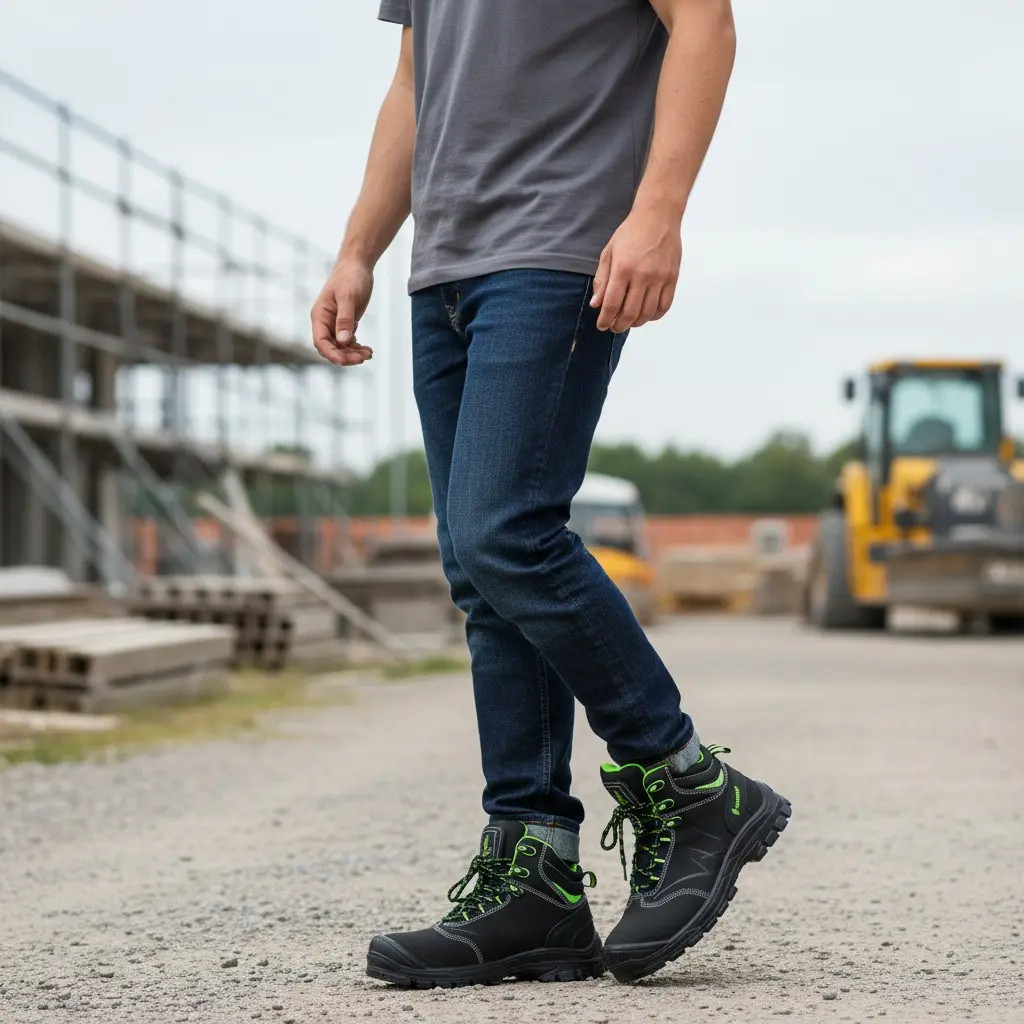 Felsőrész: marha nubukbőr - Bélés: légáteresztő textil, párnázott bokarész - Talpbetét: légáteresztő textil - Talp: csúszásmentes, olajálló, antisztatikus, energiaelnyelő sarok, kétrétegű PU/PU  - Norma: EN 20345:2022
