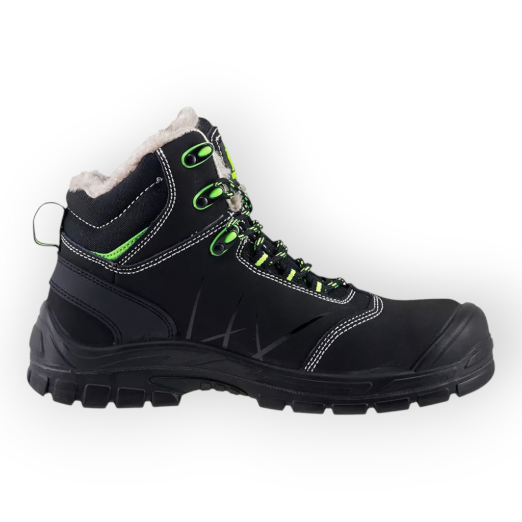 Felsőrész: marha nubukbőr - Bélés: műszőrme, párnázott bokarész - Talpbetét: műszőrme - Talp: csúszásmentes, olajálló, antisztatikus, energiaelnyelő sarok, kétrétegű EVA / Gumi - Norma: EN 20345:2022