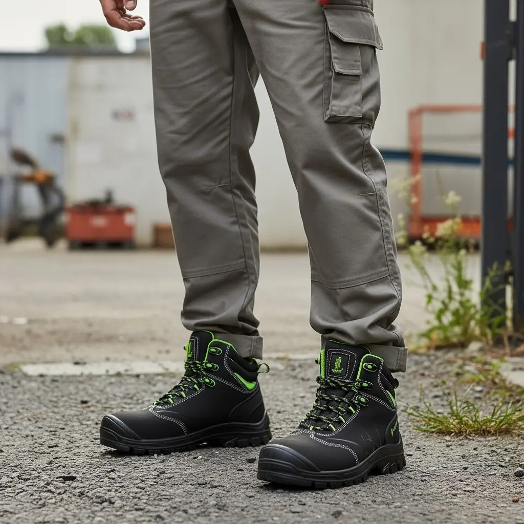 Felsőrész: marha nubukbőr - Bélés: műszőrme, párnázott bokarész - Talpbetét: műszőrme - Talp: csúszásmentes, olajálló, antisztatikus, energiaelnyelő sarok, kétrétegű EVA / Gumi - Norma: EN 20345:2022