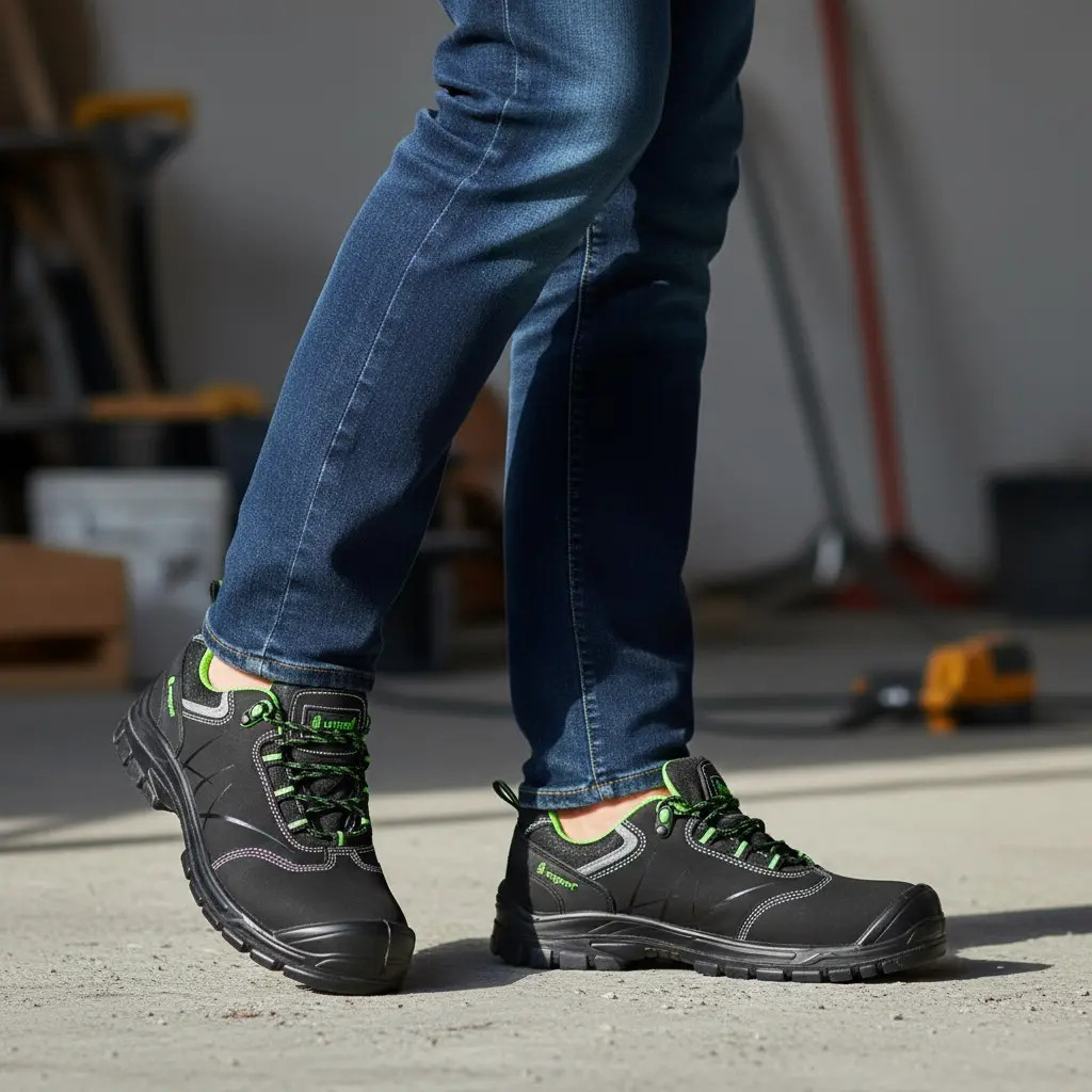 Felsőrész: marha nubukbőr - Bélés: légáteresztő textil, párnázott bokarész - Talpbetét: légáteresztő textil - Talp: csúszásmentes, olajálló, antisztatikus, energiaelnyelő sarok, kétrétegű PU/PU  - Norma: EN 20345:2022