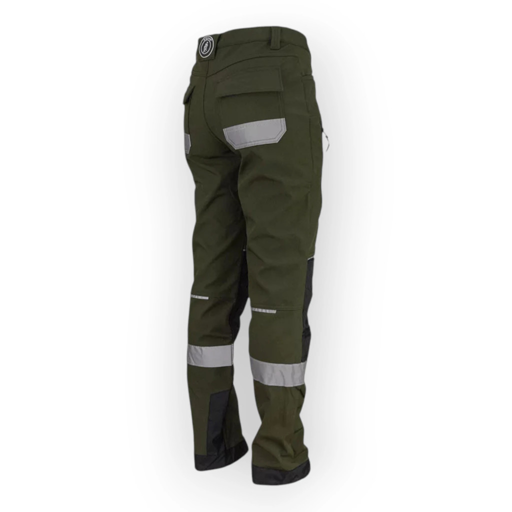 Urgent 753 bélelt softshell deréknadrág. - Anyaga: 300 g/m2 erős, strapabíró softshell, amely ellenáll a mechanikai igénybevételnek. - Bélés: meleg, hőtartó bélés biztosítja a hideg elleni védelmet. - Szín: sötétzöld alapszín, fekete térd- és szárvédelem, valamint fényvisszaverő csíkok a jobb láthatóságért. - Zsebek: több cipzáras és funkcionális zsebbel rendelkezik, amelyek biztonságos tárolást nyújtanak. - Erősítés: a térdrészen és a szárvégeken extra erősítést kapott, ami növeli az élettartamát. - Kialakítás: deréknadrág fazon, övbújtatókkal, cipzáras és patentos záródással.