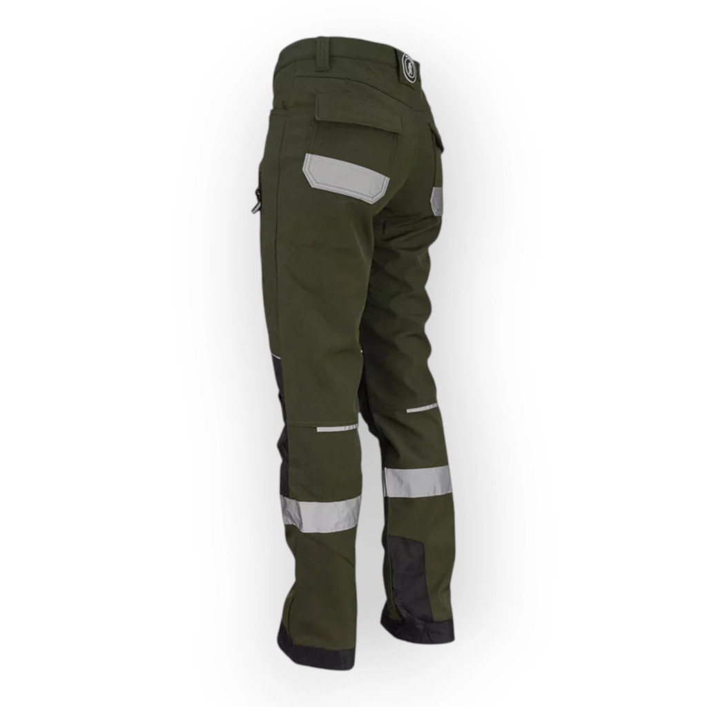 Urgent 753 bélelt softshell deréknadrág. - Anyaga: 300 g/m2 erős, strapabíró softshell, amely ellenáll a mechanikai igénybevételnek. - Bélés: meleg, hőtartó bélés biztosítja a hideg elleni védelmet. - Szín: sötétzöld alapszín, fekete térd- és szárvédelem, valamint fényvisszaverő csíkok a jobb láthatóságért. - Zsebek: több cipzáras és funkcionális zsebbel rendelkezik, amelyek biztonságos tárolást nyújtanak. - Erősítés: a térdrészen és a szárvégeken extra erősítést kapott, ami növeli az élettartamát. - Kialakítás: deréknadrág fazon, övbújtatókkal, cipzáras és patentos záródással.