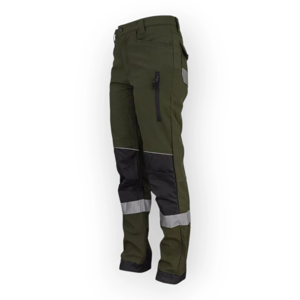 Urgent 753 bélelt softshell deréknadrág. - Anyaga: 300 g/m2 erős, strapabíró softshell, amely ellenáll a mechanikai igénybevételnek. - Bélés: meleg, hőtartó bélés biztosítja a hideg elleni védelmet. - Szín: sötétzöld alapszín, fekete térd- és szárvédelem, valamint fényvisszaverő csíkok a jobb láthatóságért. - Zsebek: több cipzáras és funkcionális zsebbel rendelkezik, amelyek biztonságos tárolást nyújtanak. - Erősítés: a térdrészen és a szárvégeken extra erősítést kapott, ami növeli az élettartamát. - Kialakítás: deréknadrág fazon, övbújtatókkal, cipzáras és patentos záródással.