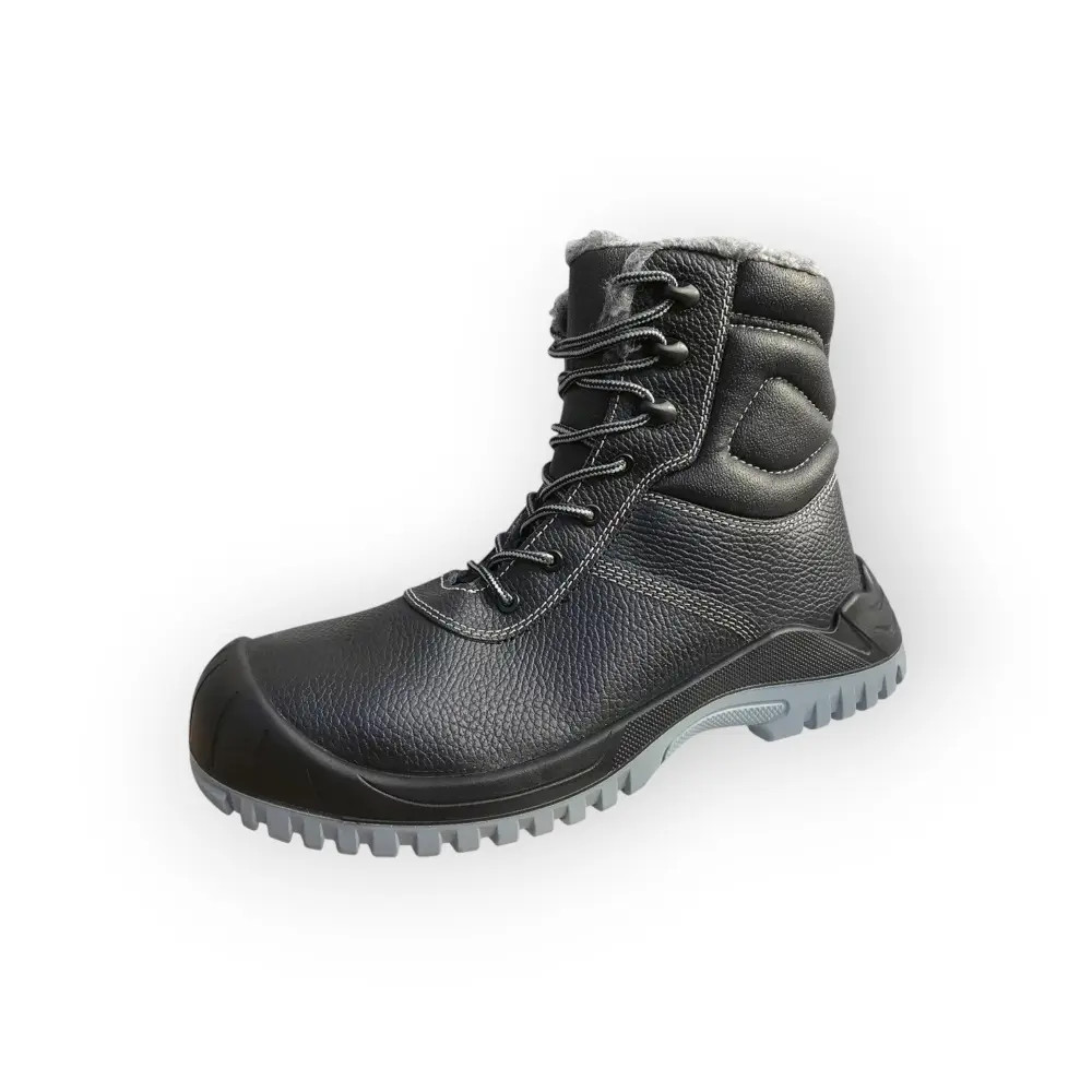 Szőrmebéléses, magas szárú félcsizma - vízálló marhabőr felsőrész - kompozit kaplis, kevlár talpátszúrás elleni védelem - fémmentes - kétrétegű, csúszásmentes zsír-, olajálló PU talp - parafa téli talpbetét - könnyű, kényelmes, tartós viselet - (-20°C-os) hőmérsékletig kiválóan használható.