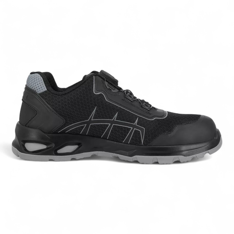 Felsőrész: tartós és légáteresztő textil, a sarok és orr részeken erősítéssel - Bélés: légáteresztő szövet, párnázott bokarész - Talpbetét: textil borítású PU talpbetét - Orrmerevítő: kompozit - Talplemez: kevlár - Talp: antisztatikus, olajálló, csúszásmentes kétrétegű PU/PU - Norma: EN ISO 20345:2022