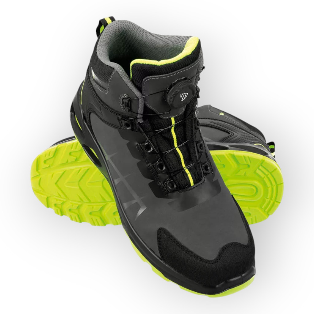 NEXO HIGH S3S SR FO biztonsági bakancsot azoknak tervezték, akiknek a munkája megköveteli a maximális védelmet és a kényelmet egész nap. A cipő modern, sportos megjelenésű, fekete–neon sárga színvilága nemcsak látványos, hanem jól láthatóvá is teszi viselőjét. - Védelmi kategória: S3S SR FO - Felsőrész: vízlepergető, légáteresztő softshell anyag - Orrvédelem: acél orrmerevítő – könnyű, mégis erős - Talp: kevlár talplemez, olaj- és csúszásálló, sav- és lúgálló - Záródás: modern gyorsfűzős (BOA típusú) rendszer – egyszerű és gyors felvétel - Bélés: nedvességelvezető, antibakteriális bélés a friss komfortért - Talpbetét: ergonomikus, kivehető, energiaelnyelő sarokrésszel - Szín: fekete neon sárga betétekkel.