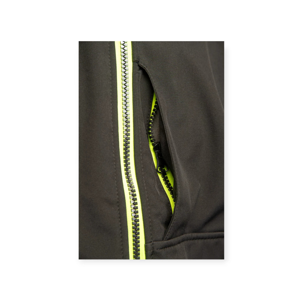 Egyenes szabás, funkcionális kialakítás, SOFTSHELL anyag.