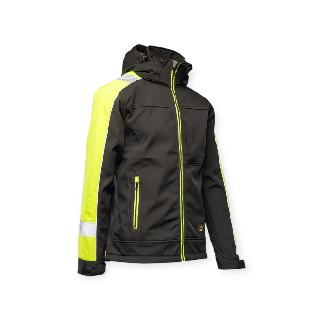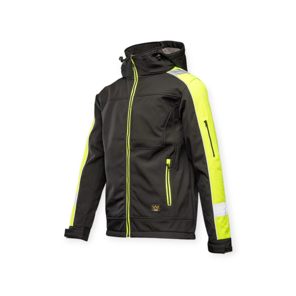 Egyenes szabás, funkcionális kialakítás, SOFTSHELL anyag. - dekoratív fényvisszaverő elemekkel - cipzáras záródás  - levehető, állítható, polár béléses kapucni - cipzáras mell és első zsebek - cipzáras zseb a bal felkaron - tépőzárral állítható mandzsetta - állítható derékrész.