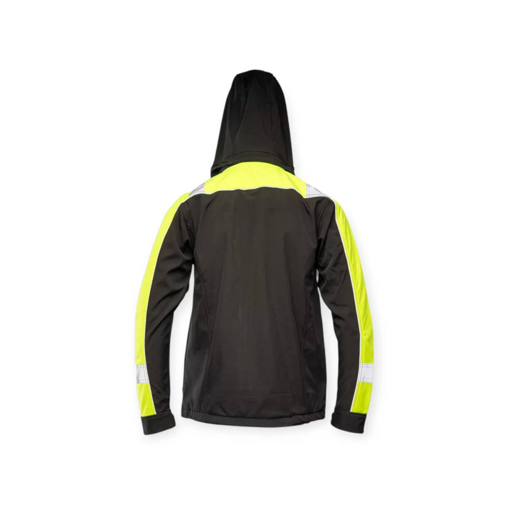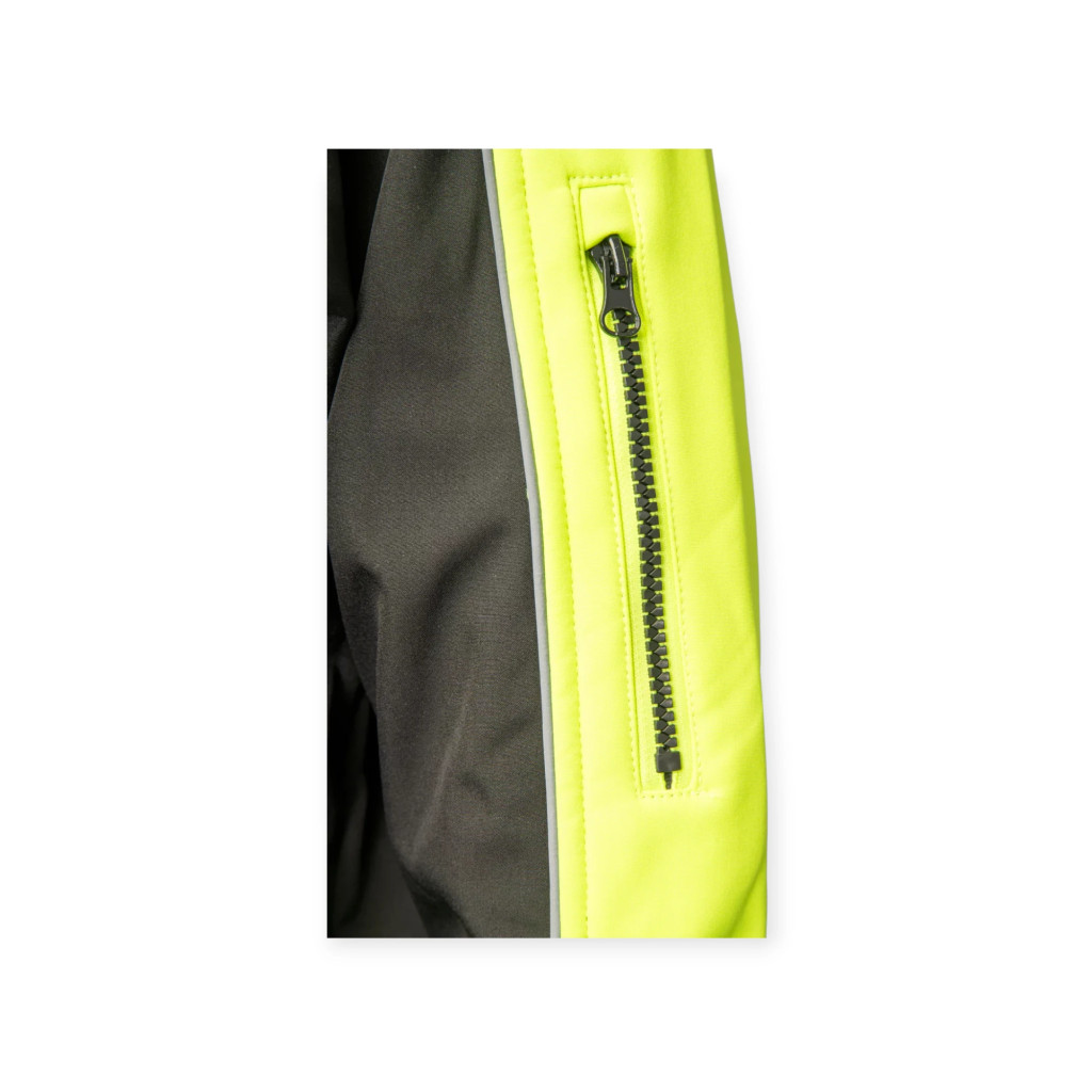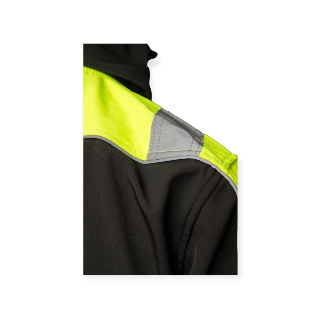 Egyenes szabás, funkcionális kialakítás, SOFTSHELL anyag. - dekoratív fényvisszaverő elemekkel - cipzáras záródás  - levehető, állítható, polár béléses kapucni - cipzáras mell és első zsebek - cipzáras zseb a bal felkaron - tépőzárral állítható mandzsetta - állítható derékrész.