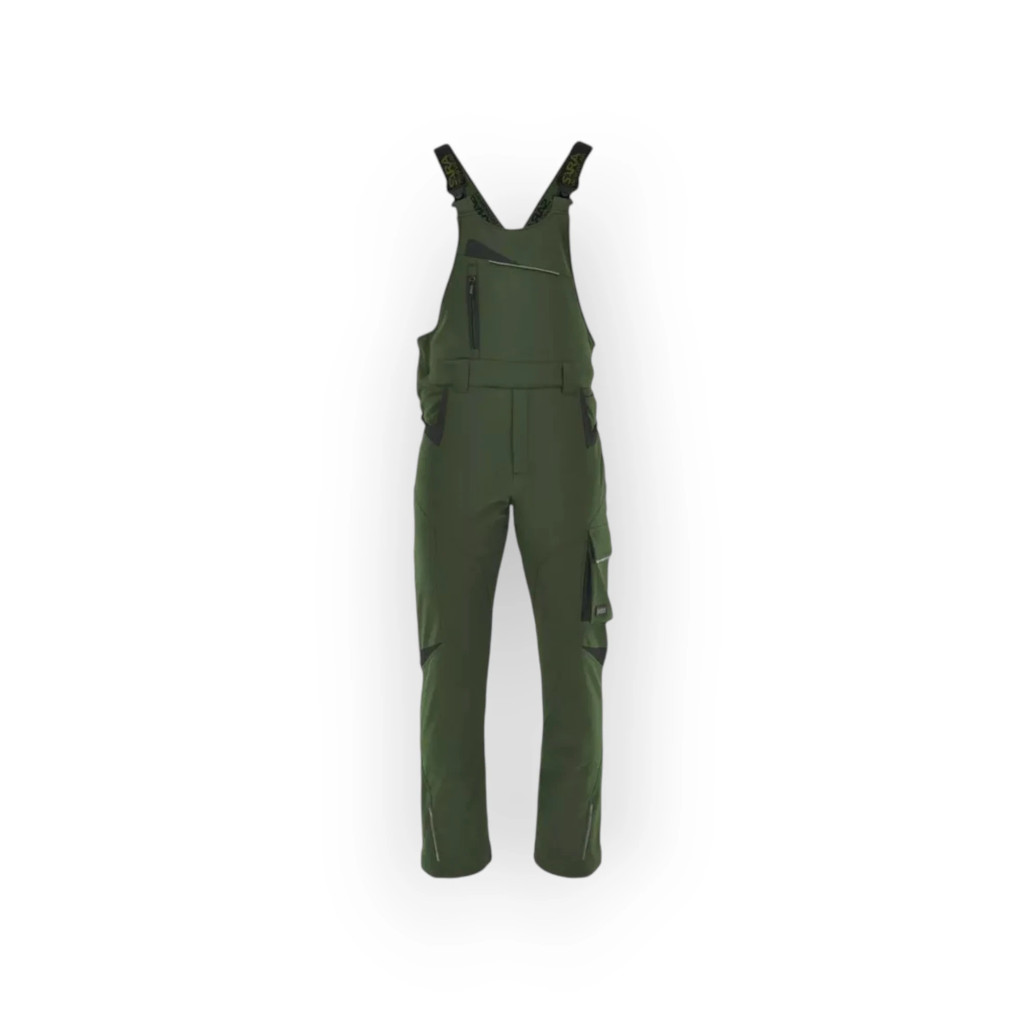 Bélelt  SOFTSHELL kertrésznadrág. Innovatív modell, amely ötvözi a funkcionalitást, a hideg elleni védelmet és a divatos megjelenést. Külső anyag: 320 g/m2, bélés: 340 g/m2 - - rugalmas, állítható nadrágtartó - fényvisszaverő elemek - tágas cipzáras mellzseb - szélálló softshell szövet - zollstock számára kialakított zseb - tépőzárral zárható combzseb - zsebfedős farzseb a jobb oldalon - állítható gumírozott derékrész.