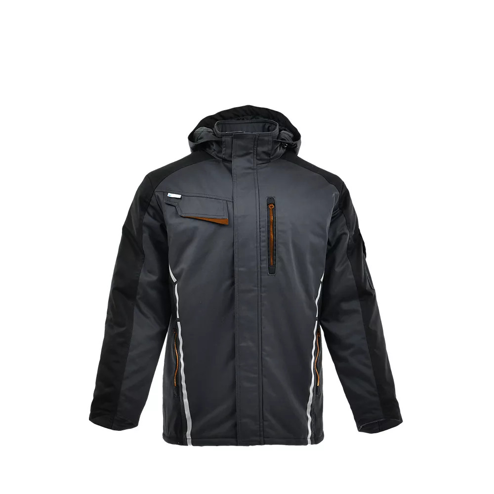 Egyenes szabás, funkcionális és kényelmes kialakítás, meleg viselet. - fényvisszaverő elemek - cipzáras záródás, cipzárfedővel - két cipzáras első zseb - egy cipzáras, és egy zsebfedős mellzseb - egy belső zseb - egy cipzáras zseb a bal ujjon a felkarnál - rugalmas mandzsetták - állítható, bélelt, levehető, szélálló kapucni.