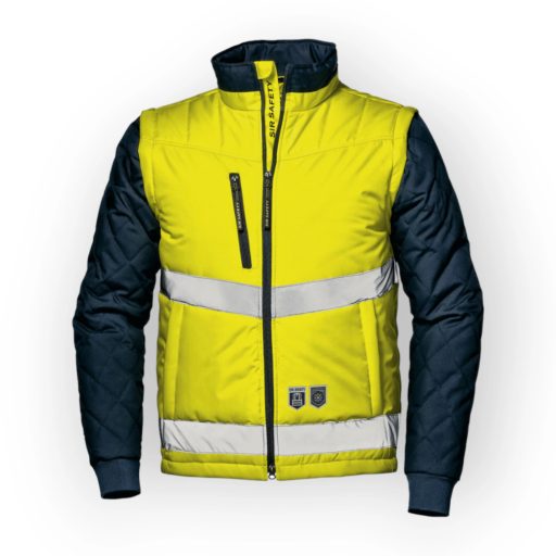 150D Oxford alapanyagból készült, vízlepergető PU bevonatú pilótadzseki, mely ujjai lecipzározhatóságával mellénnyé alakítható! Összetétel 80% poliészter, 20% pamut. 180gr/m2 bélés. Két irányű cipzáras záródás. Kontrasztos színű gallér. Két első zseb gombos záródással. Függőleges cipzáras mellzseb. Cipzárral lecsatolható ujjak. 100% poliészter mandzsetta. Tépőzáras belső zseb.